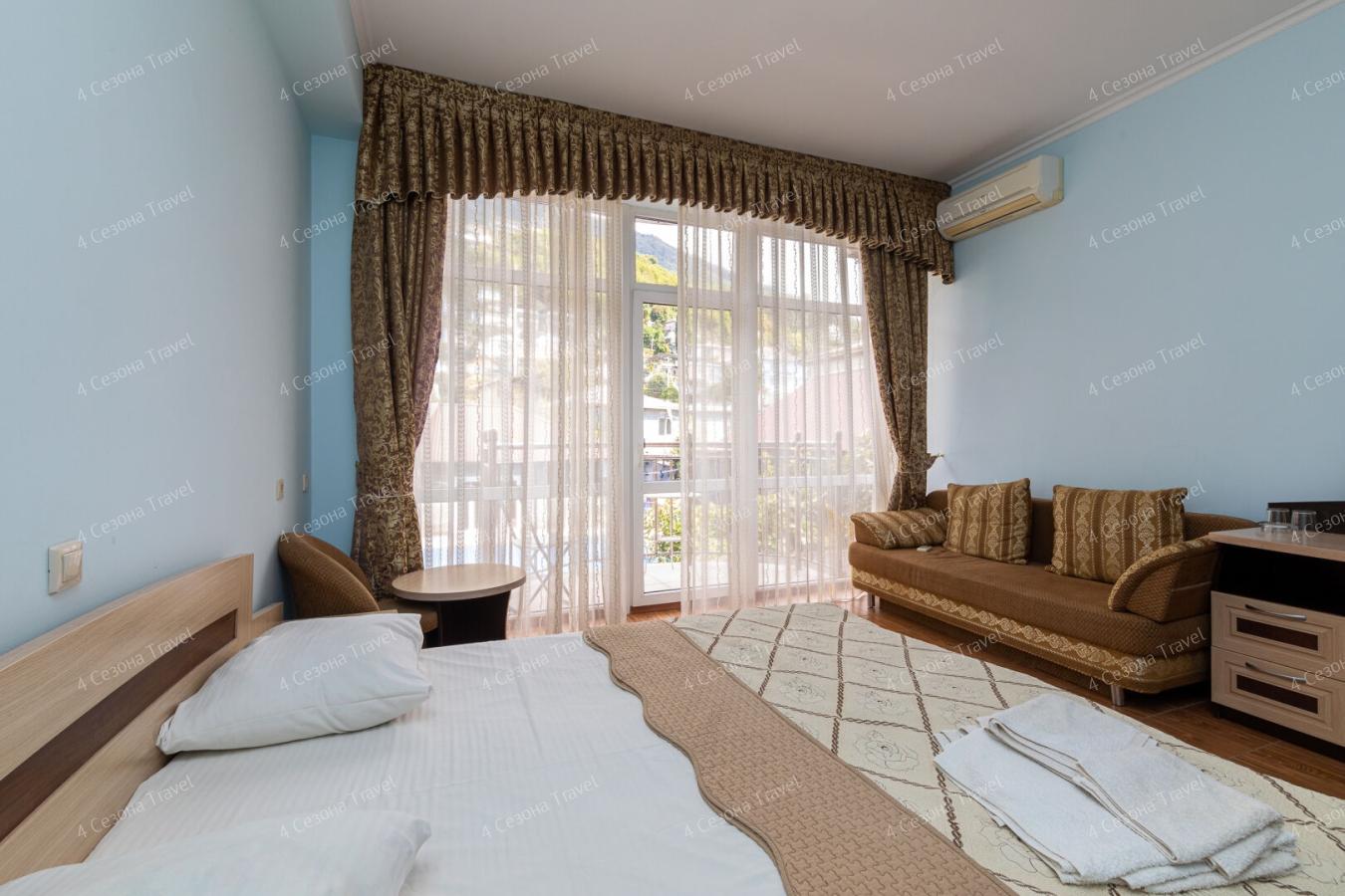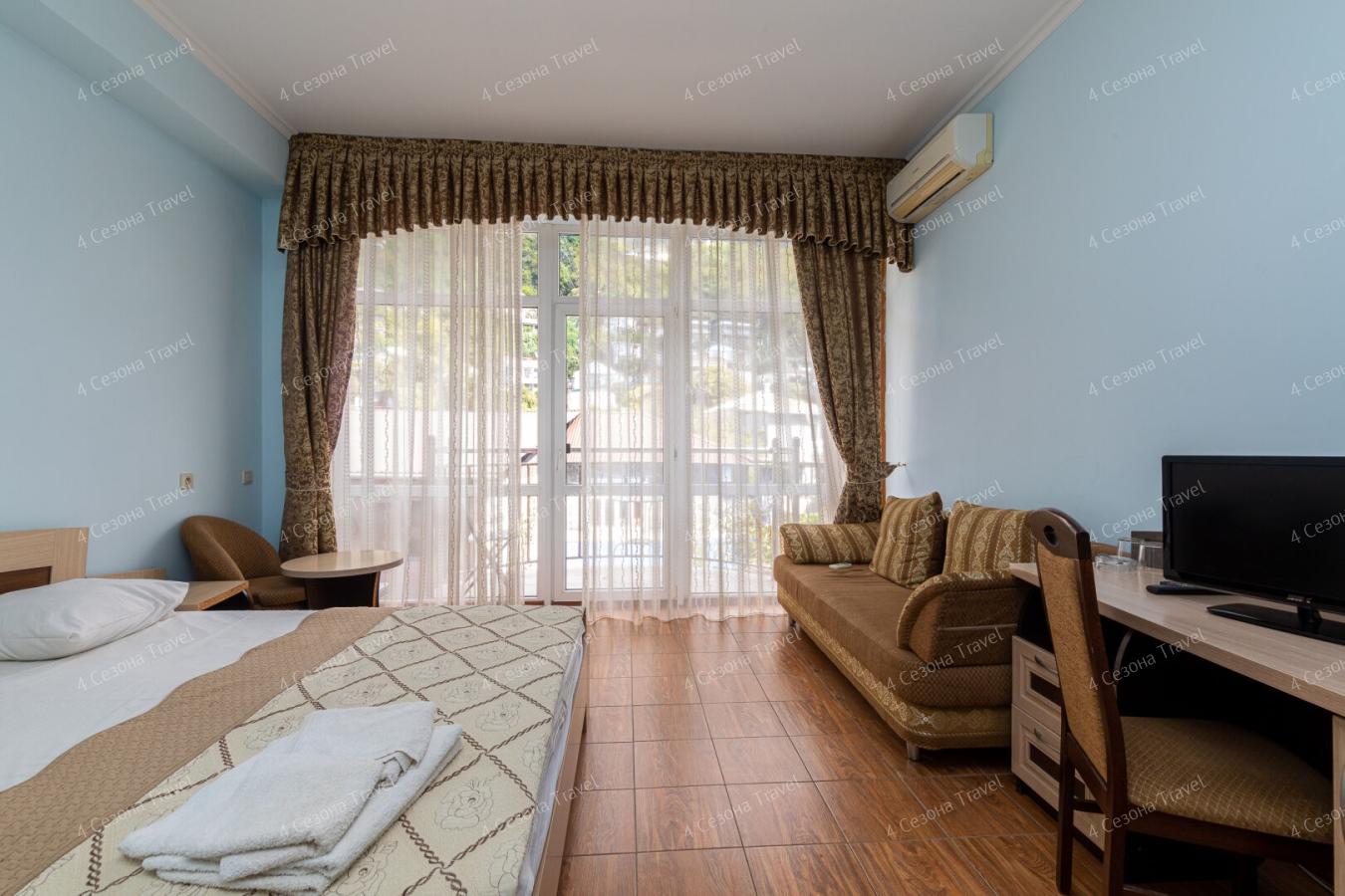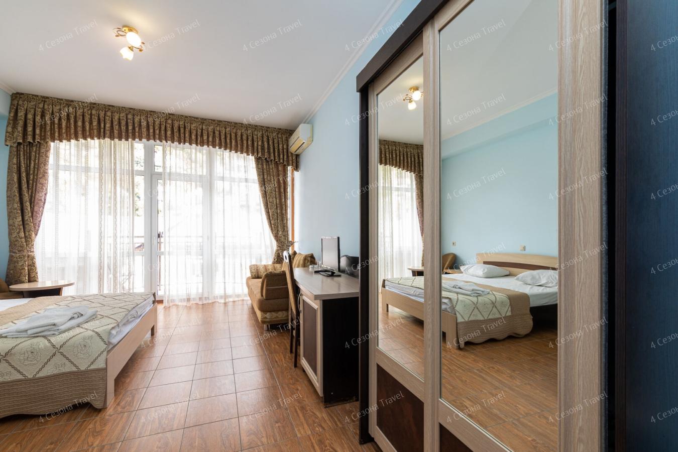 Четырехэтажный корпус отеля построен в 2012 году. Номера оборудованы санузлом с душем, сплит-системой и спутниковым телевидением, обставлены уютной мебелью. Из окон открывается панорама моря и Кавказских гор.
