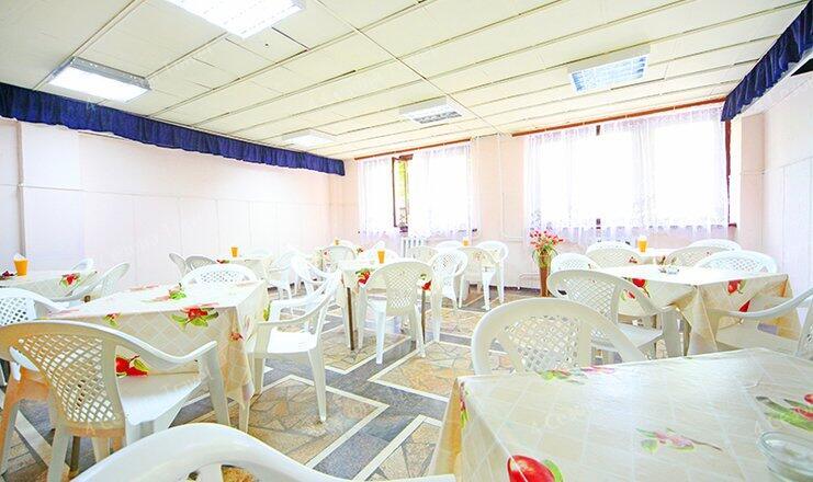 Питание гостей не входит в пакет обязательных услуг и осуществляется ими самостоятельно. В доме отдыха для этого есть кафе с домашней кухней, работающая весь день, а также бар.
