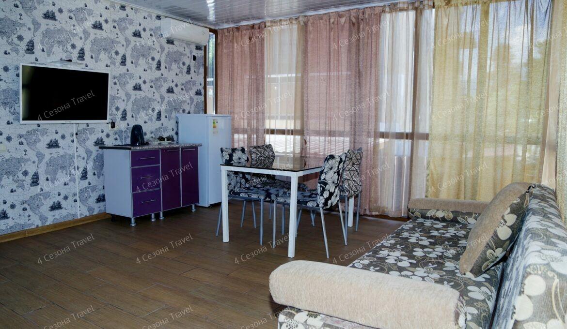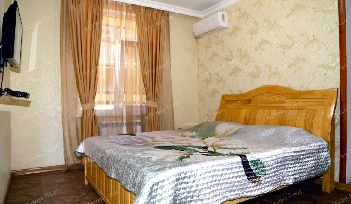 4-этажное здание гостевого дома занимает небольшую благоустроенную территорию с зеленым внутренним двориком. Гостей ожидают 19 номеров, в категориях полулюкс и люкс имеются санузел с душем, кондиционер, телевизор, беспроводной интернет, в некоторых предусмотрена мини-кухня. В номерах категории стандарт санузел и душевые расположены на этаже.