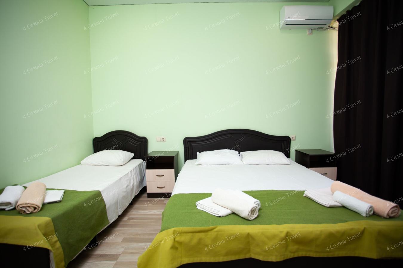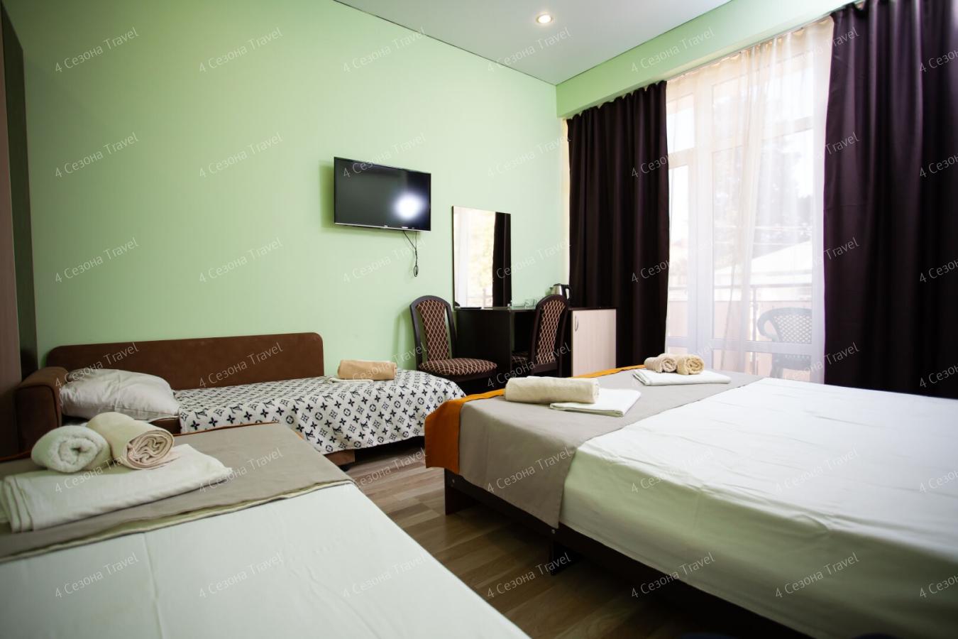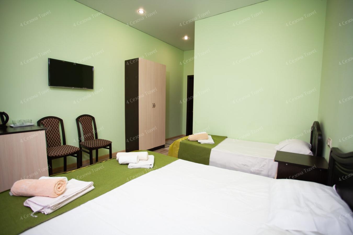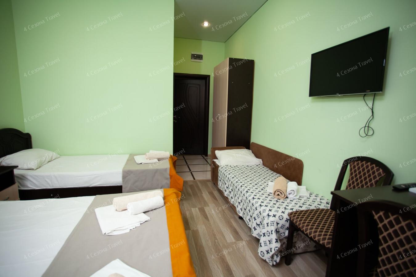Четырехэтажный корпус гостевого дома разместился в 100 метрах от морского побережья. В распоряжении гостей 3-местные номера с персональным санузлом. Везде предусмотрен телевизор, интернет и установлен кондиционер.