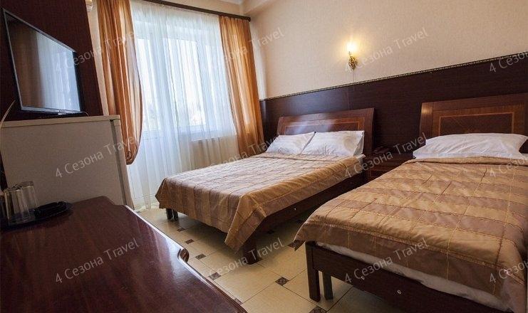 Четырехэтажное здание отеля находится на охраняемой закрытой территории, что обеспечивает гостям комфорт и безопасность. Большой номерной фонд позволяет одновременно принять до 200 отдыхающих. Номера шести категорий, включая VIP-коттеджи и апартаменты, соответствуют требованиям европейского стандарта. Везде предусмотрены слит-система, цифровые телевизоры, ванная комната с комплектом косметических принадлежностей для гостей, в коттеджах оборудована мини-кухня.