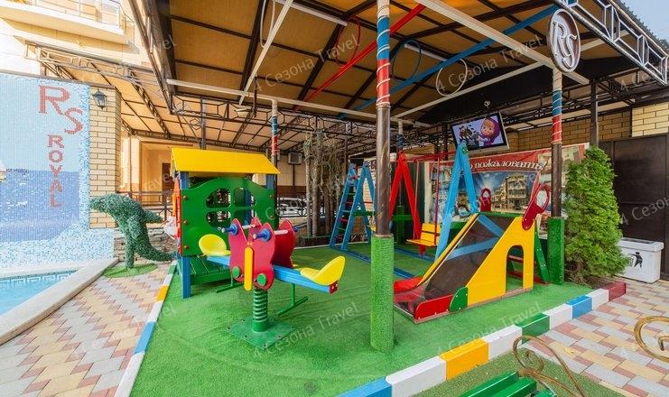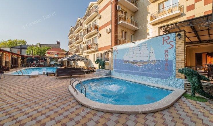 Отель «RS-Royal» разместился на улице Новороссийской в центре курортной Анапы. Рядом находится основная инфраструктура города – кафе, магазины, центральный рынок, остановка общественного транспорта, в шаговой доступности расположены главные развлечения Анапы – аквапарк «Золотой пляж», Крокодиловая ферма, динопарк «Рекс», до городского песчаного пляжа всего десять минут ходьбы.