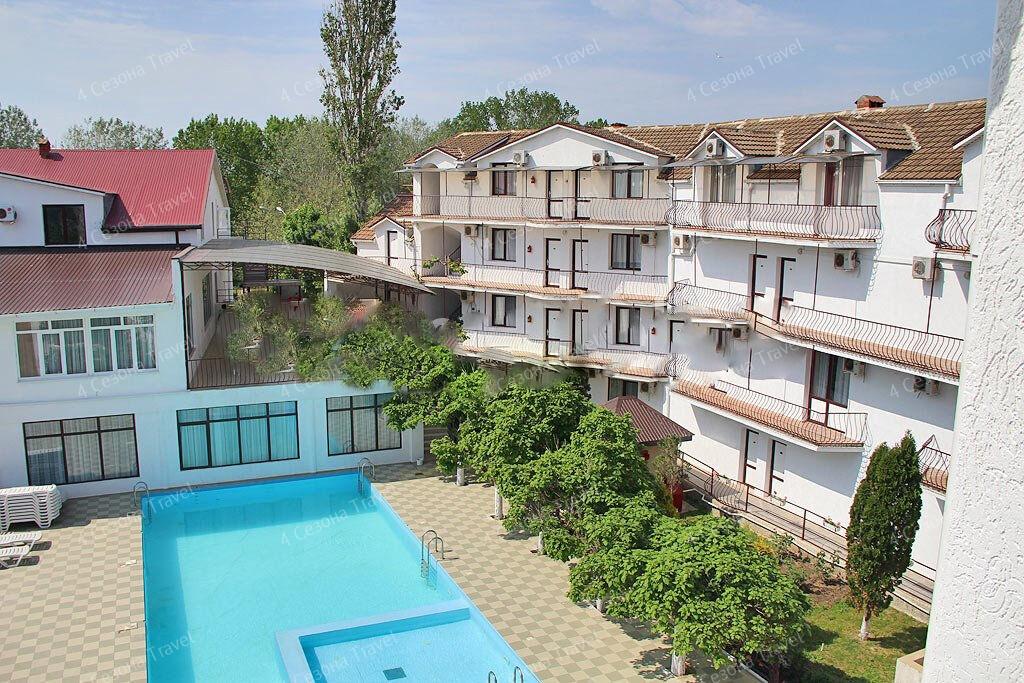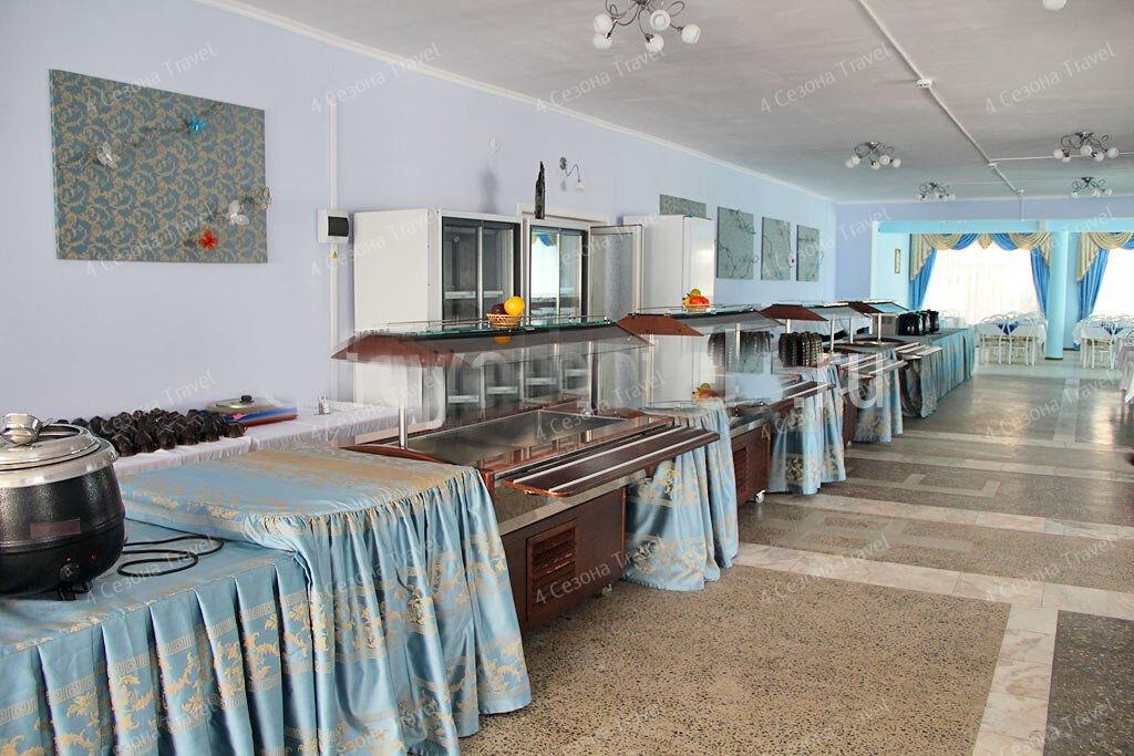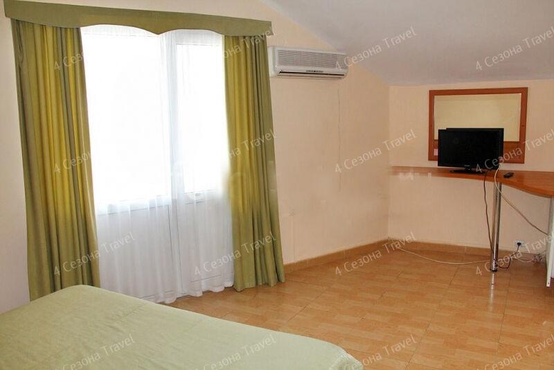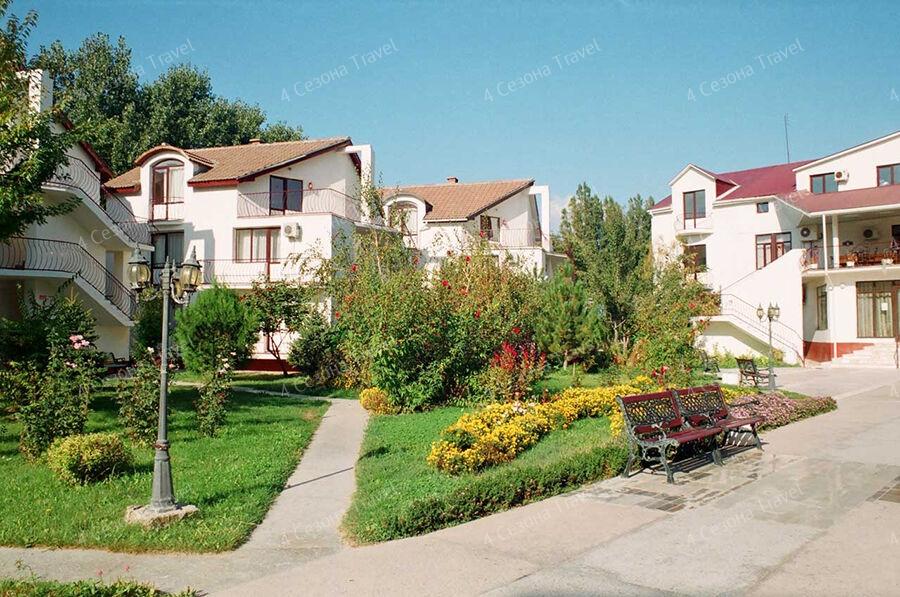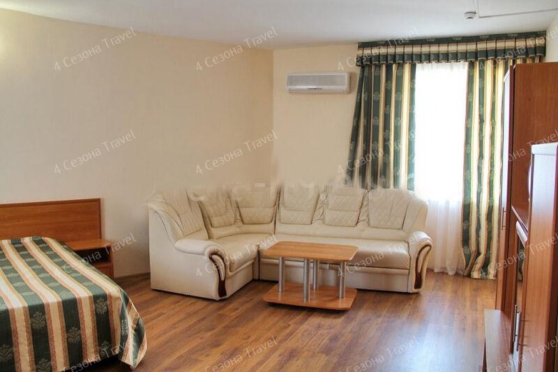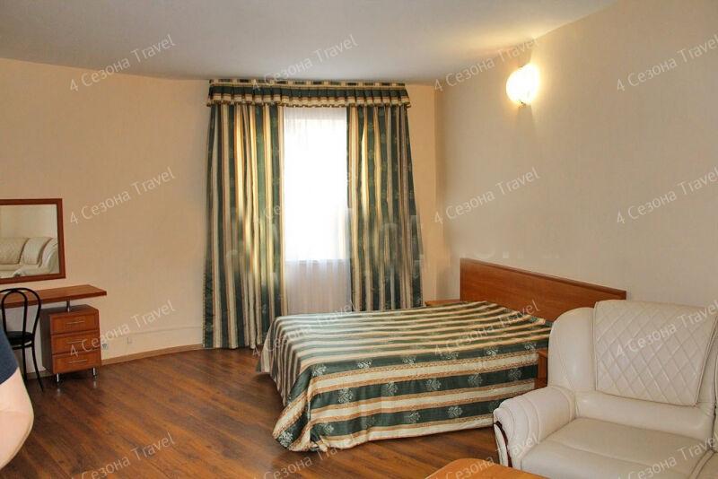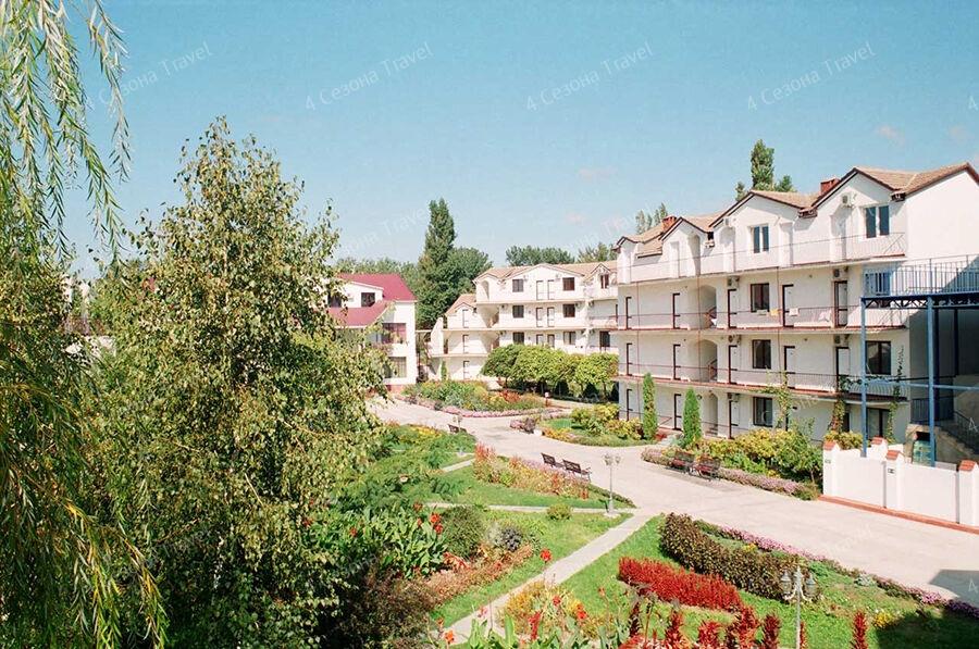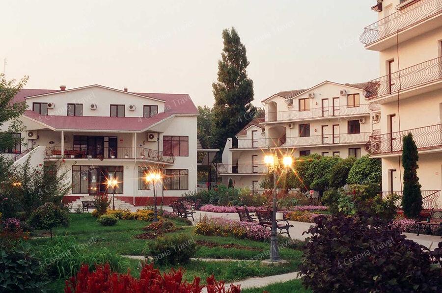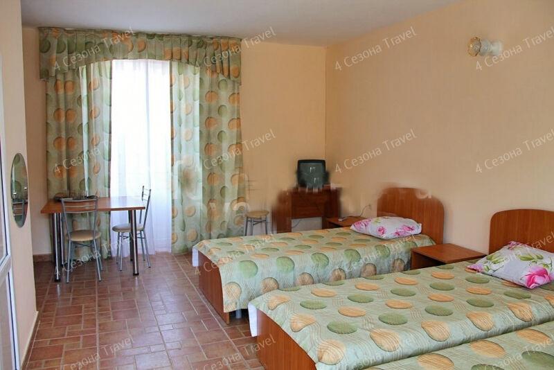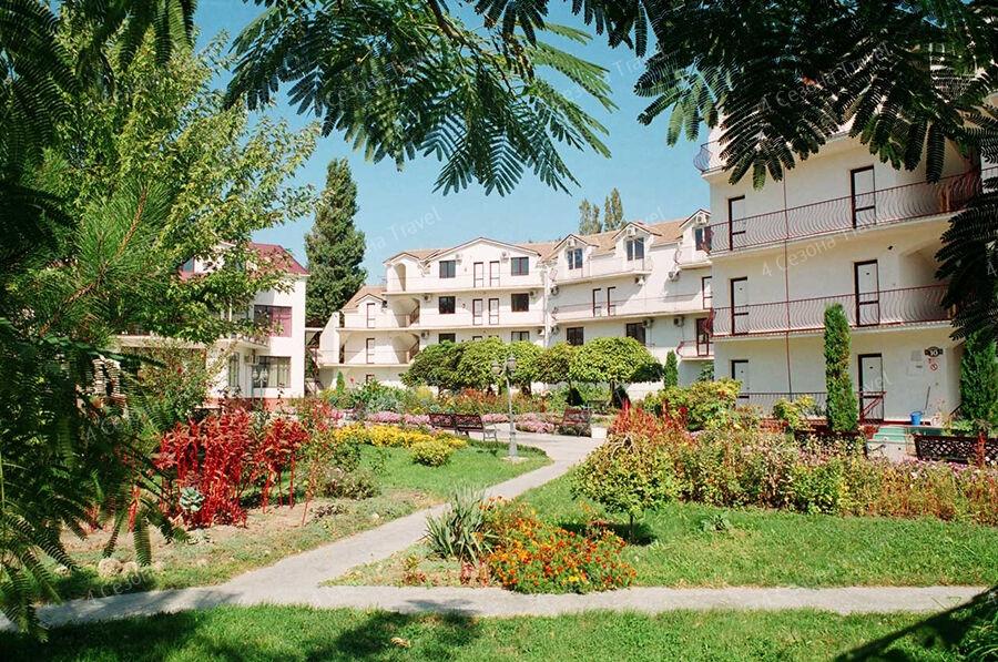 На благоустроенной озелененной территории среди красивых благоухающих цветников и клумб расположились трех и четырехэтажные белоснежные корпуса. Обширный жилой фонд, рассчитанный на 300 человек, предлагает гостям двух- и трехместные номера с классическим интерьерами. Все номера оснащены собственным санузлом с ванной, и укомплектованы необходимой техникой: в номерах есть телевизор, холодильник, фен.