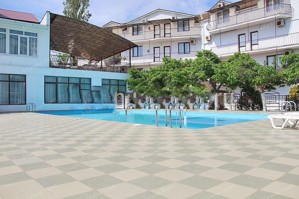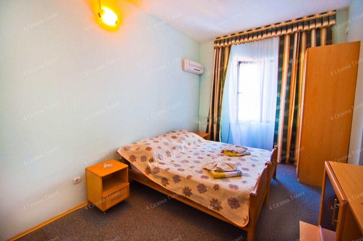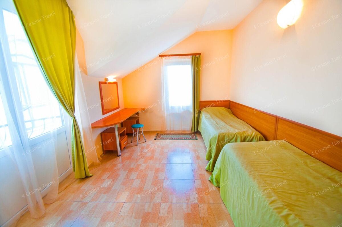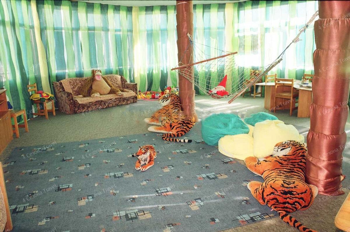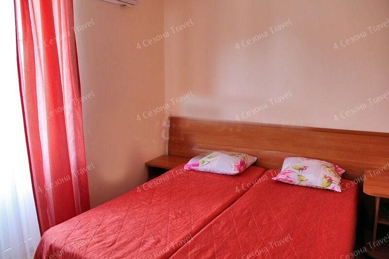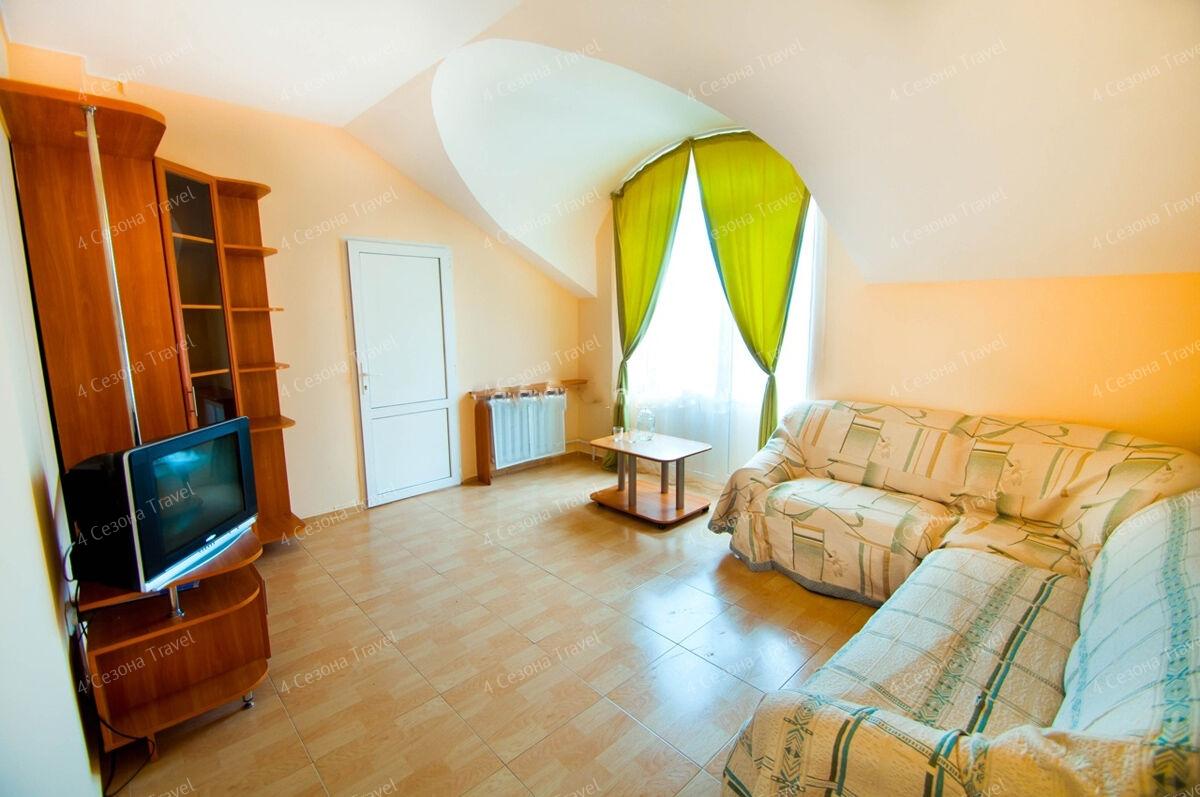 На благоустроенной озелененной территории среди красивых благоухающих цветников и клумб расположились трех и четырехэтажные белоснежные корпуса. Обширный жилой фонд, рассчитанный на 300 человек, предлагает гостям двух- и трехместные номера с классическим интерьерами. Все номера оснащены собственным санузлом с ванной, и укомплектованы необходимой техникой: в номерах есть телевизор, холодильник, фен.