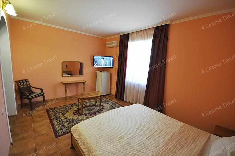 Для проживания отдыхающих предлагается жилой 3-х этажный корпус, вместительность которого составляет 40 мест. Гостиница предлагает номера категории Стандарт 2-местный 1-комнатный и Стандарт 3-местный 2-комнатный. Номерной фонд укомплектован в соответствии с современными гостиничными требованиями: холодильник, телевизор ЖК и кондиционер, ванная комната с ванной феном и туалетными принадлежностями. Современный дизайн и приятная обстановка дополняются достойным сервисом. До ближайшего пляжа пешком идти 15 минут.
