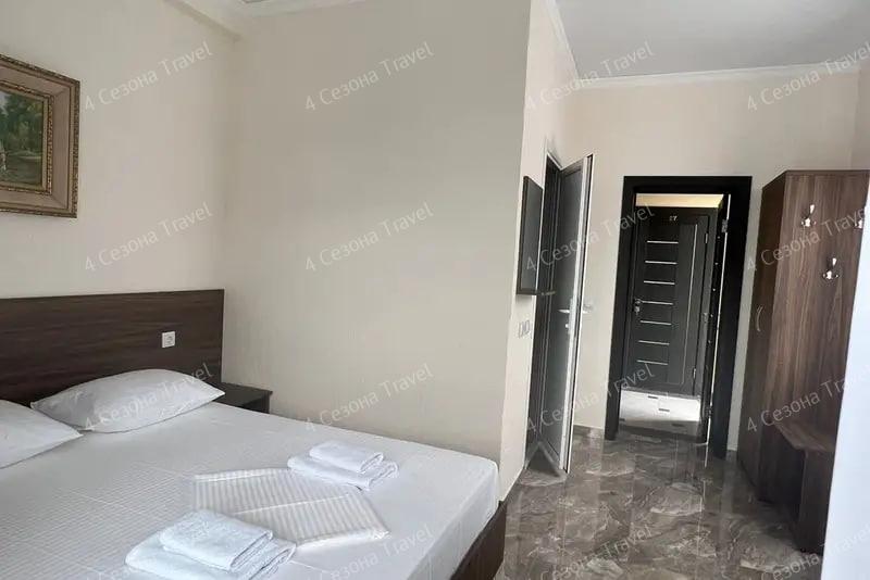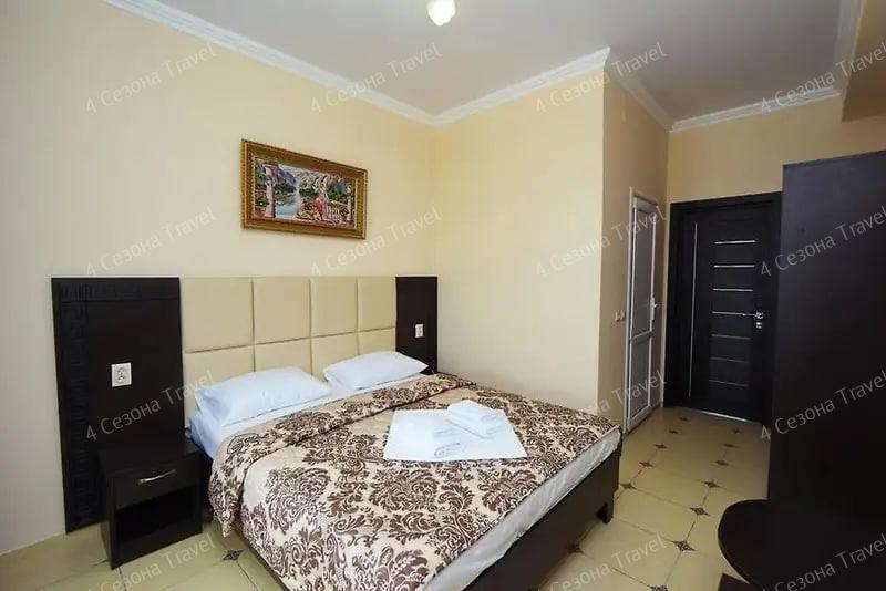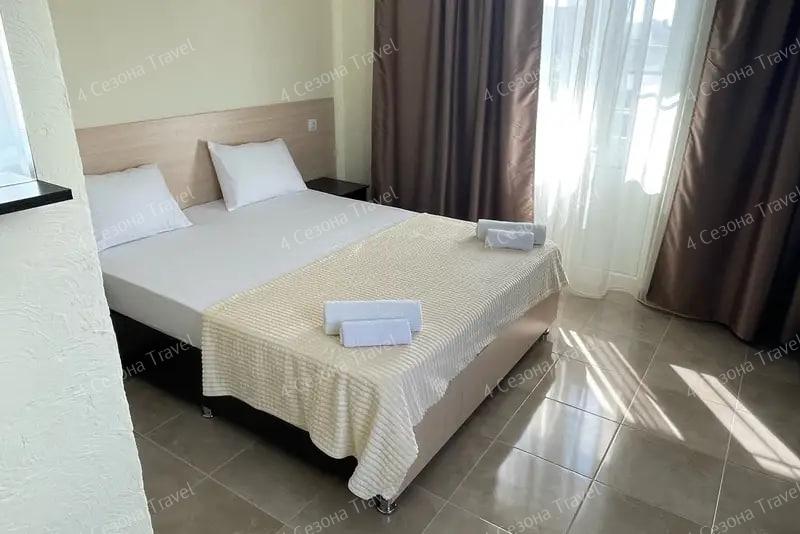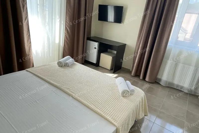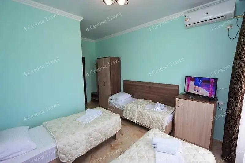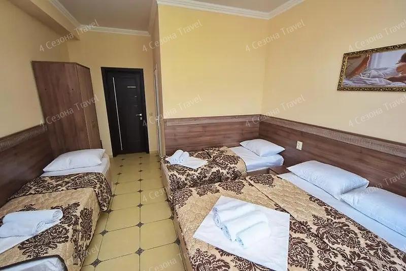 4-х местный Стандарт: двуспальная и односпальные кровати, прикроватные тумбочки, кондиционер, мини-холодильник, телевизор, шкаф, зеркало, санузел в номере.