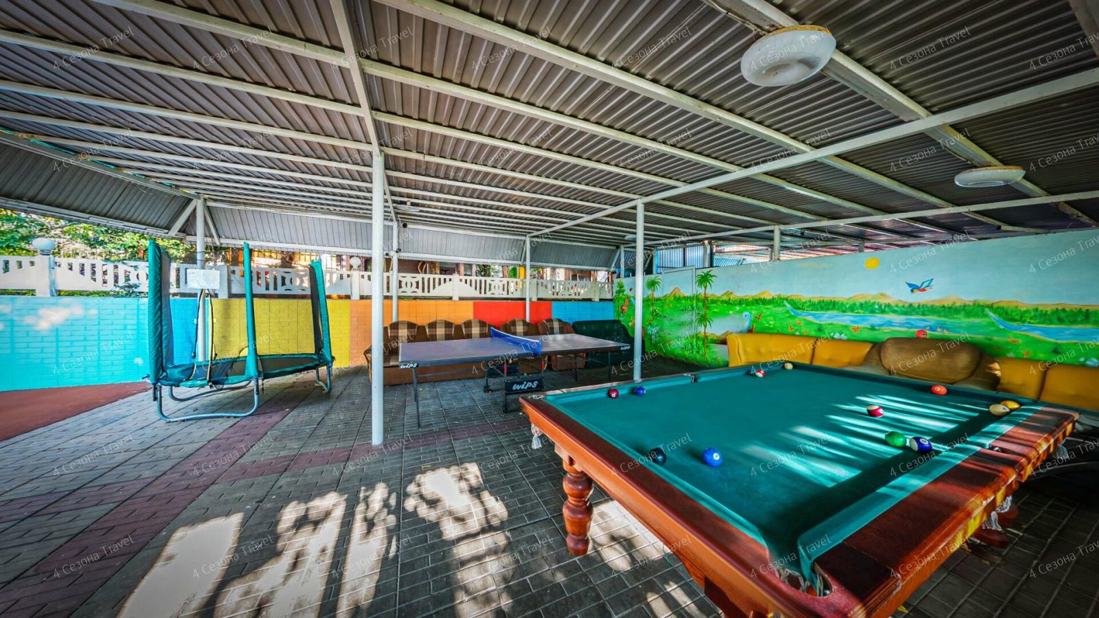 На территории работает кафе-столовая, доступен беспроводной интернет. В распоряжении отдыхающих открытый не подогреваемый бассейн, настольный теннис, бильярд. Для автовладельцев предусмотрена платная парковка, местно согласовывается по предварительной записи у администратора,по вечерам проходят анимационные программы.