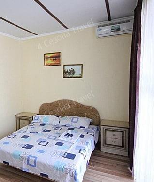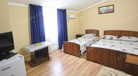 2-х местный Комфорт: двуспальная или односпальные кровати, прикроватные тумбочки, шкаф, телевизор, кондиционер, холодильник, санузел в номере, столик и стулья на террасе возле каждого номера