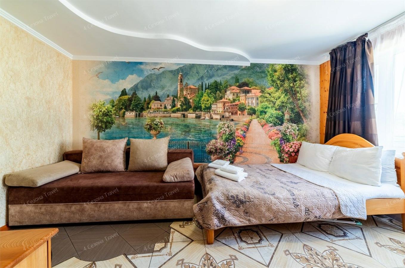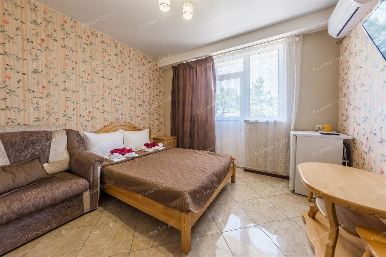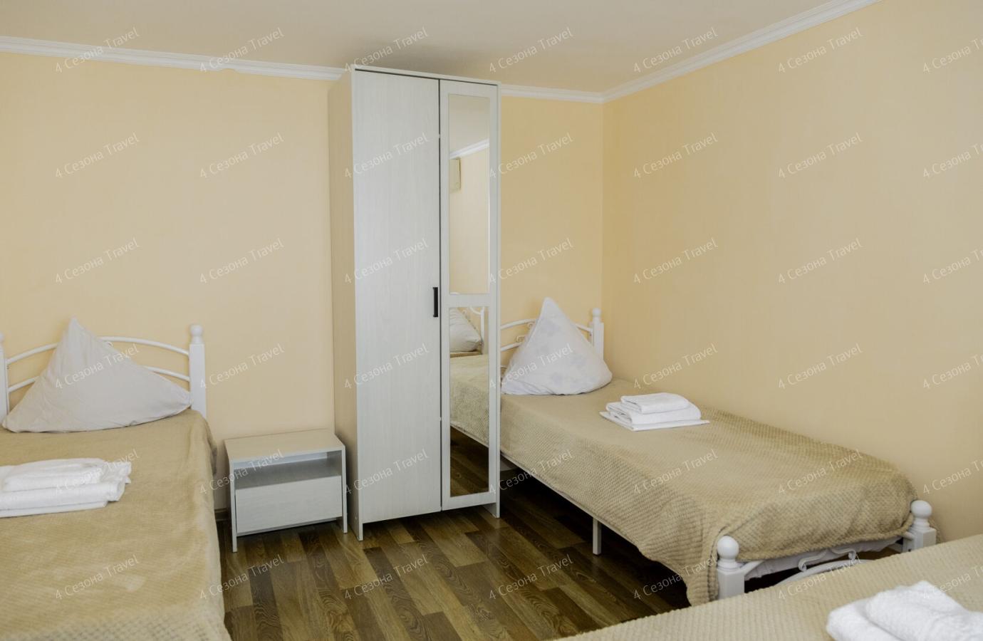 Гостям предлагаются по-домашнему уютные двух-, трех- и четырехместные номера, в которых есть все необходимое для комфортного проживания: современная мебель, кондиционер, телевизор, спутниковое ТВ, холодильник, туалет, душ.