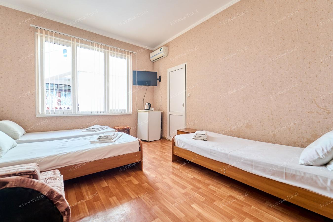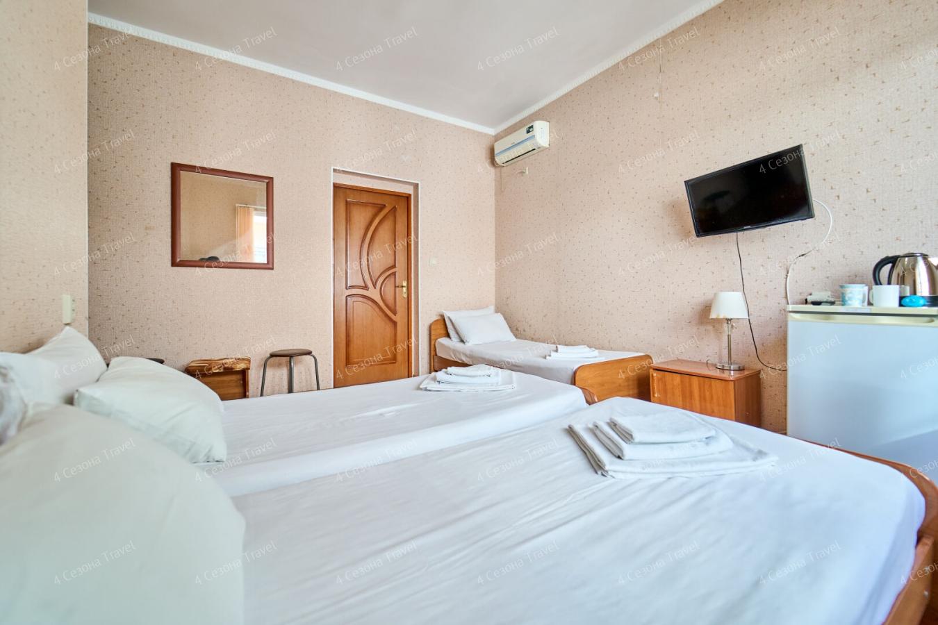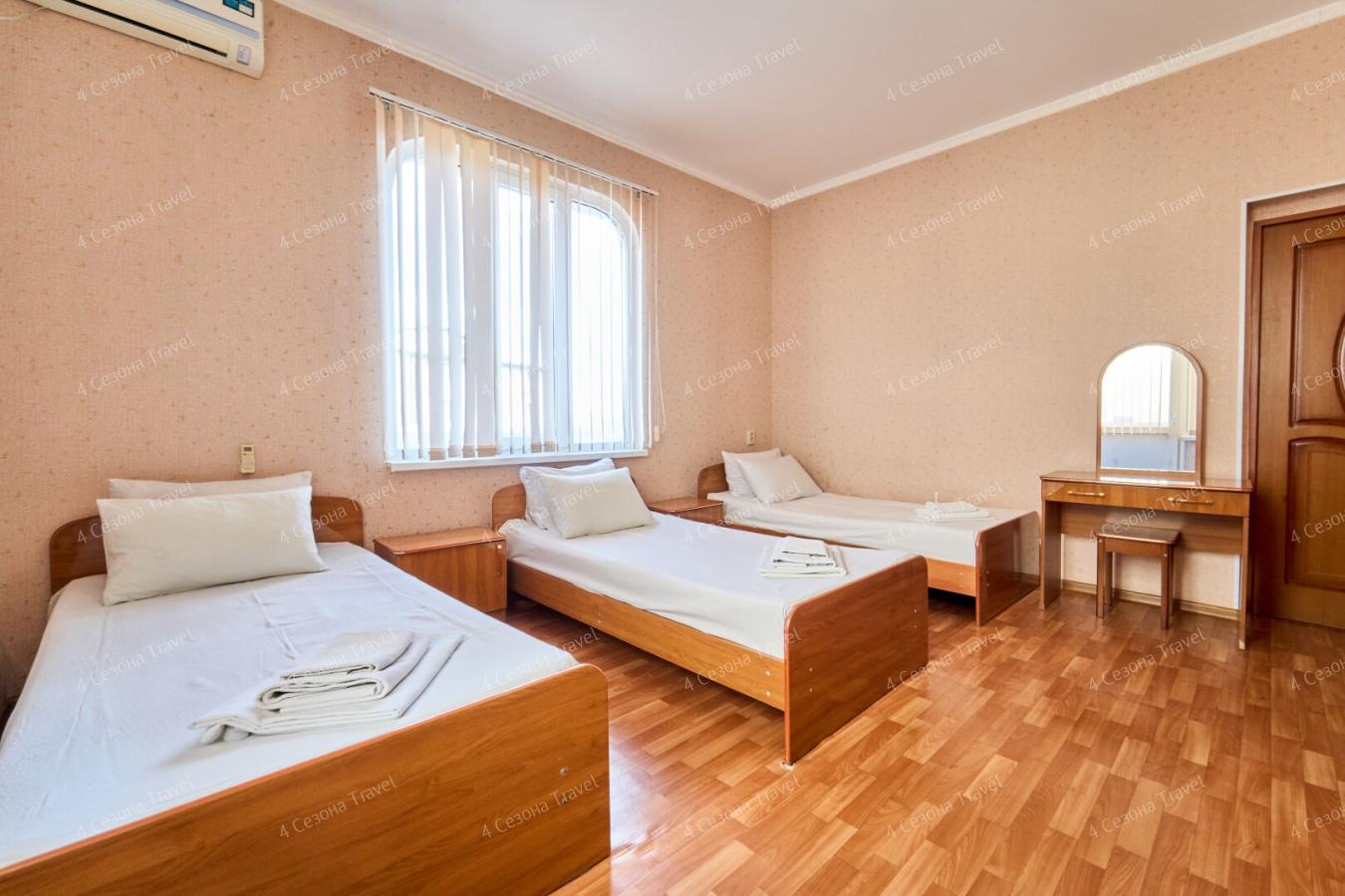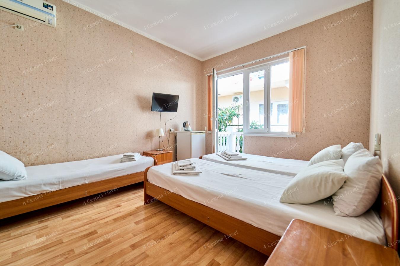 Трехэтажный корпус отеля занимает небольшую закрытую территорию, расположенную всего в 200 метрах от моря. Гостей ожидают 2-х, 3-х и 4-х местные номера Стандарт. Каждый номер оснащен индивидуальным санузлом, кондиционером и необходимой техникой, везде доступен беспроводной интернет, а в ряде комнат предусмотрены балконы.