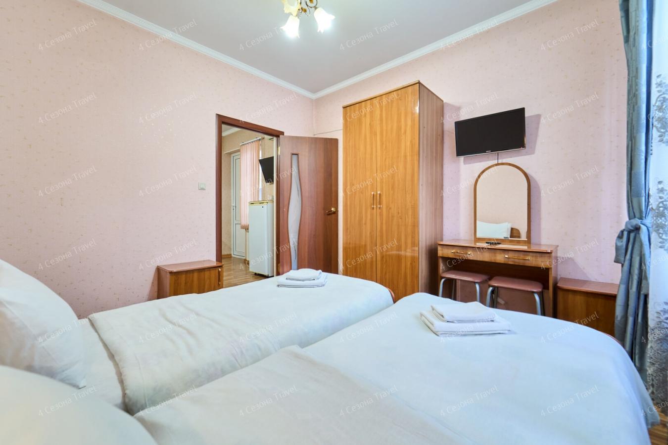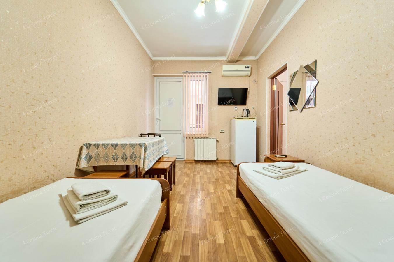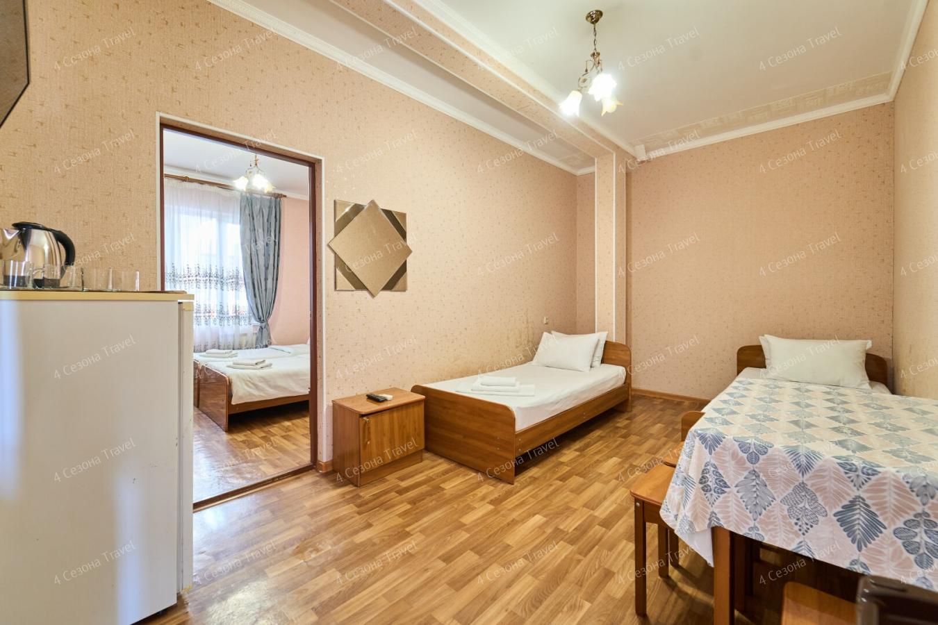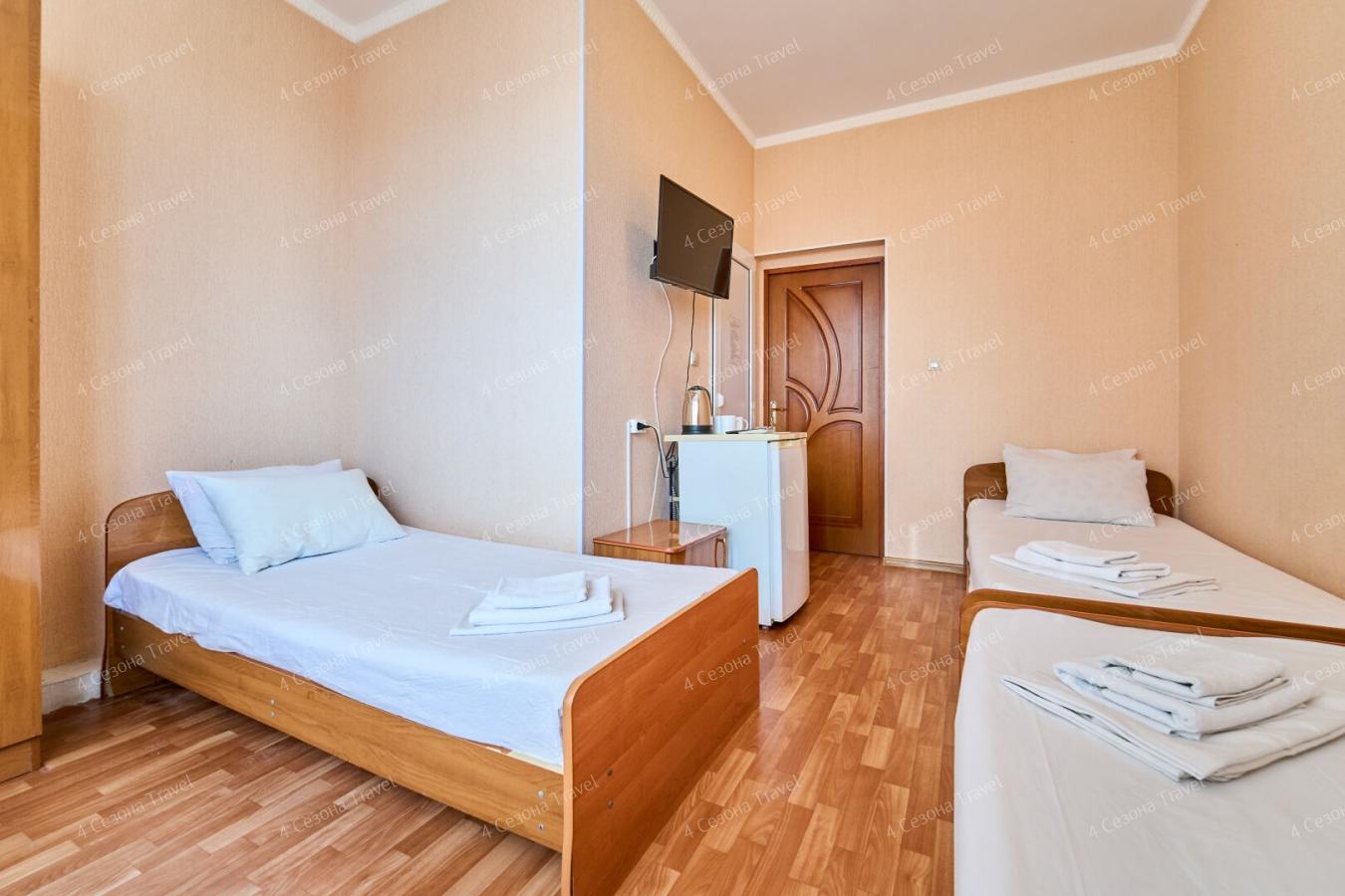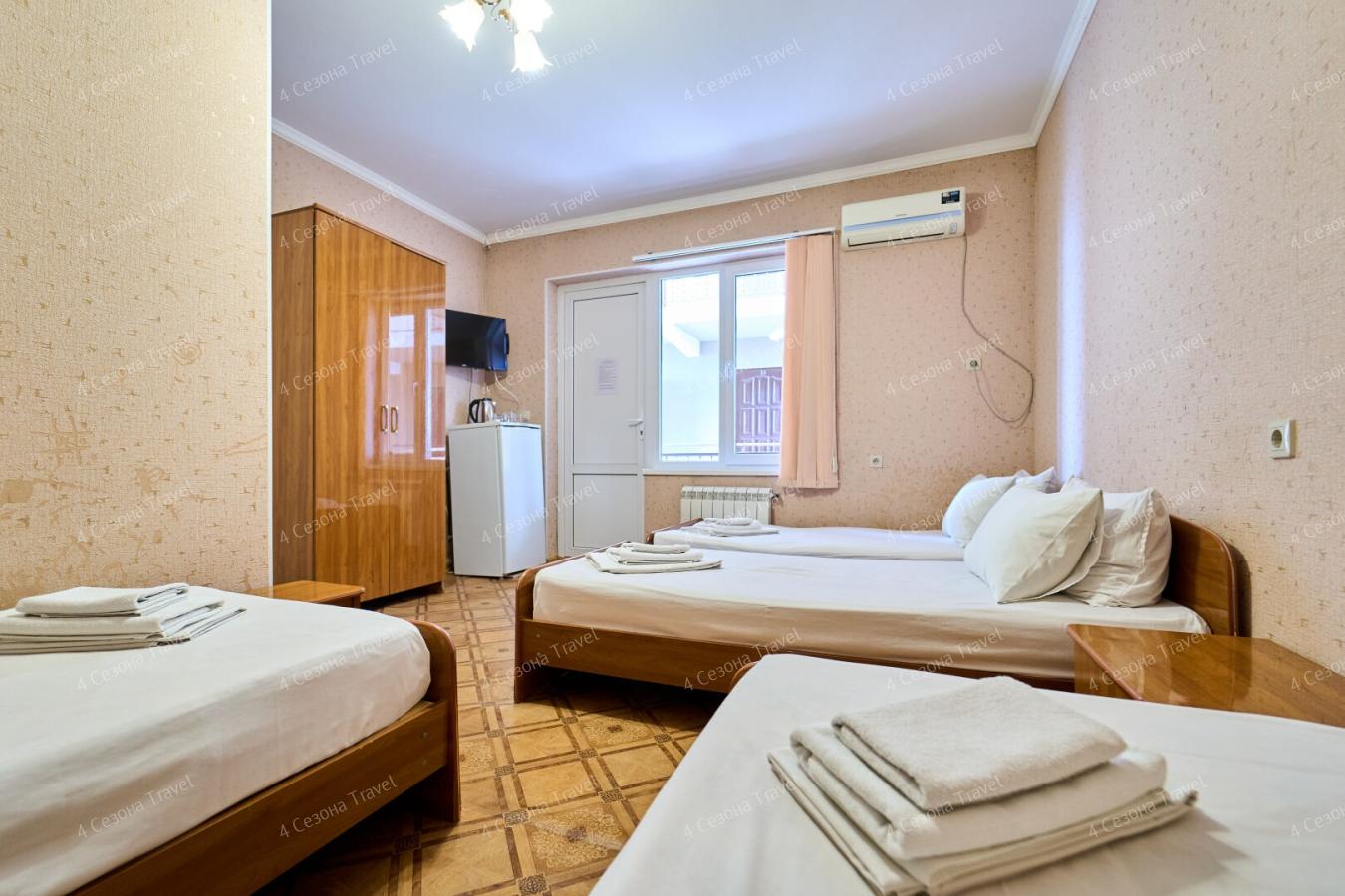 Трехэтажный корпус отеля занимает небольшую закрытую территорию, расположенную всего в 200 метрах от моря. Гостей ожидают 2-х, 3-х и 4-х местные номера Стандарт. Каждый номер оснащен индивидуальным санузлом, кондиционером и необходимой техникой, везде доступен беспроводной интернет, а в ряде комнат предусмотрены балконы.
