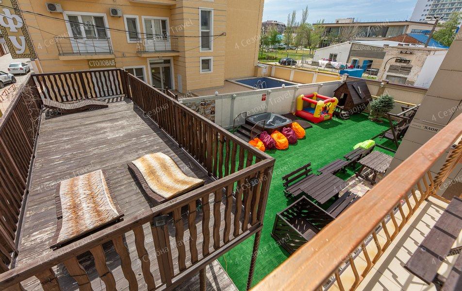 Четырехэтажный корпус арт-отеля (без лифта) располагается на закрытой охраняемой территории. Жилой фонд, рассчитанный на 70 гостей, предлагает 2-х, 3-х местные номера разной категории — от Экономов до Апартаментов. Везде, независимо от уровня комфорта, предусмотрена сплит-система и собственный душ. В ряде комнат имеются балконы, номера Апартаменты оснащены кухней.