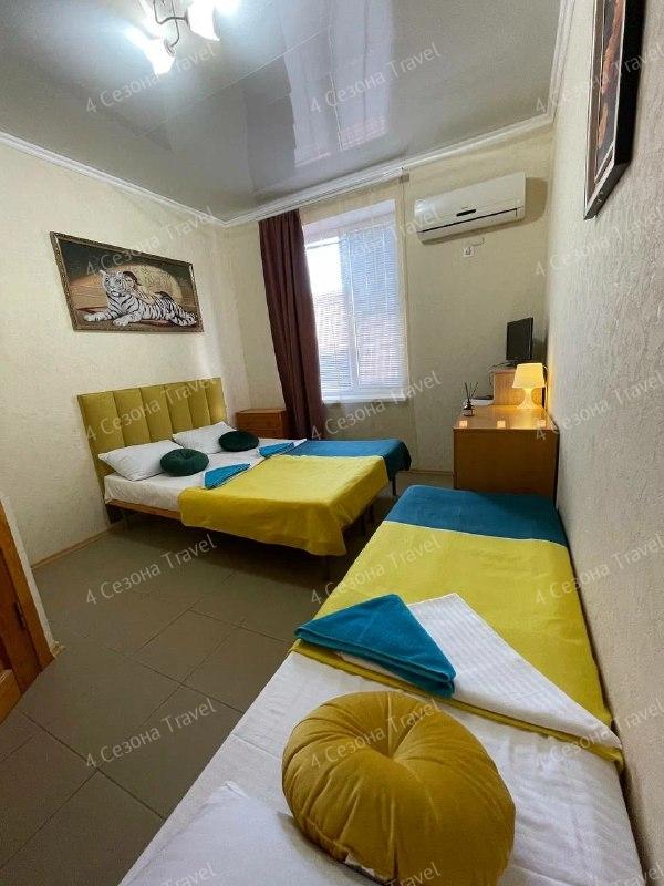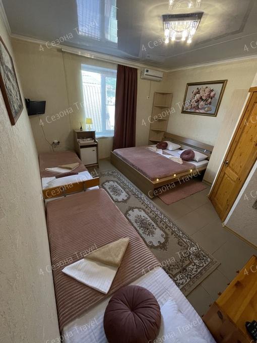4-х местный Стандарт: 2 односпальные кровати, 1 двуспальная кровать, комод, гардероб, телевизор, холодильник, сплит-система, санузел в номере.