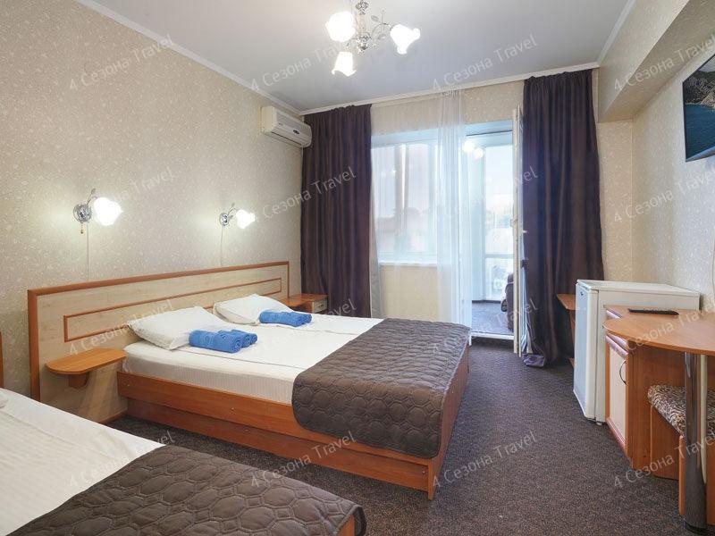 Территория гостевого дома защищена от посторонних и надежно охраняется. Она состоит из одного 5-этажного здания, кафе и открытого бассейна. На выбор гостей – двух- и трехместные номера со всеми современными удобствами и необходимой бытовой техникой. Гости мини-отеля могут играть в бильярд, посещать кафе-бар, отдыхать в беседках, пользоваться крытым бассейном, джакузи и сауной.
